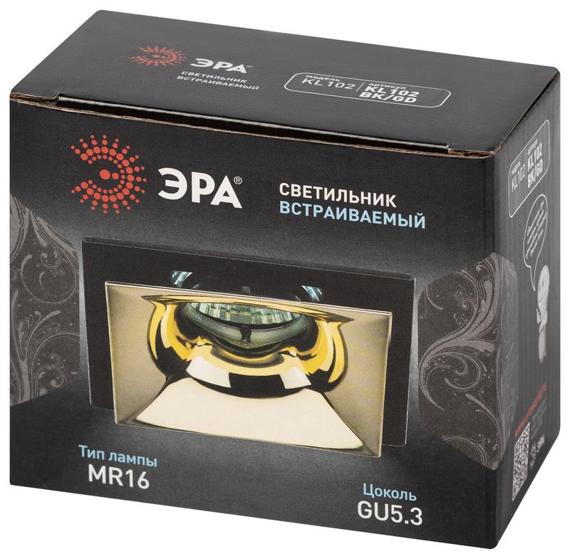 Характеристики Встраиваемый светильник декоративный ЭРА KL102 BK/GD MR16 GU5.3 черный золото: