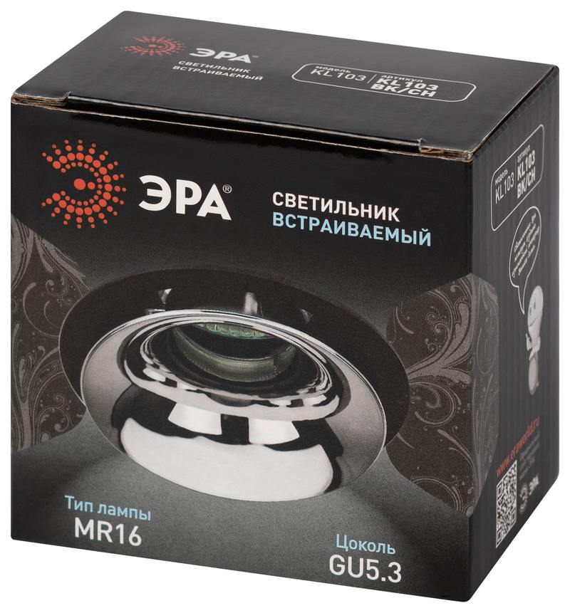 Характеристики Встраиваемый светильник декоративный ЭРА KL103 BK/CH MR16 GU5.3 черный хром: