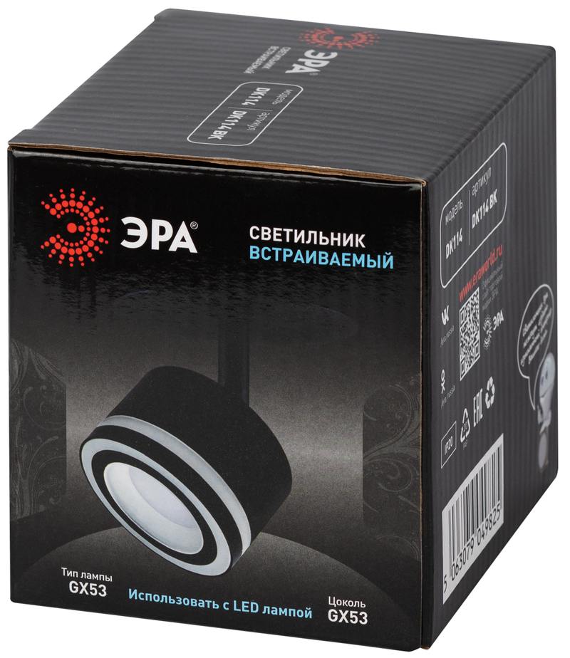 Характеристики Встраиваемый светильник под лампу GX53 ЭРА DK114 BK черный: