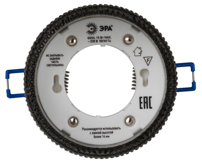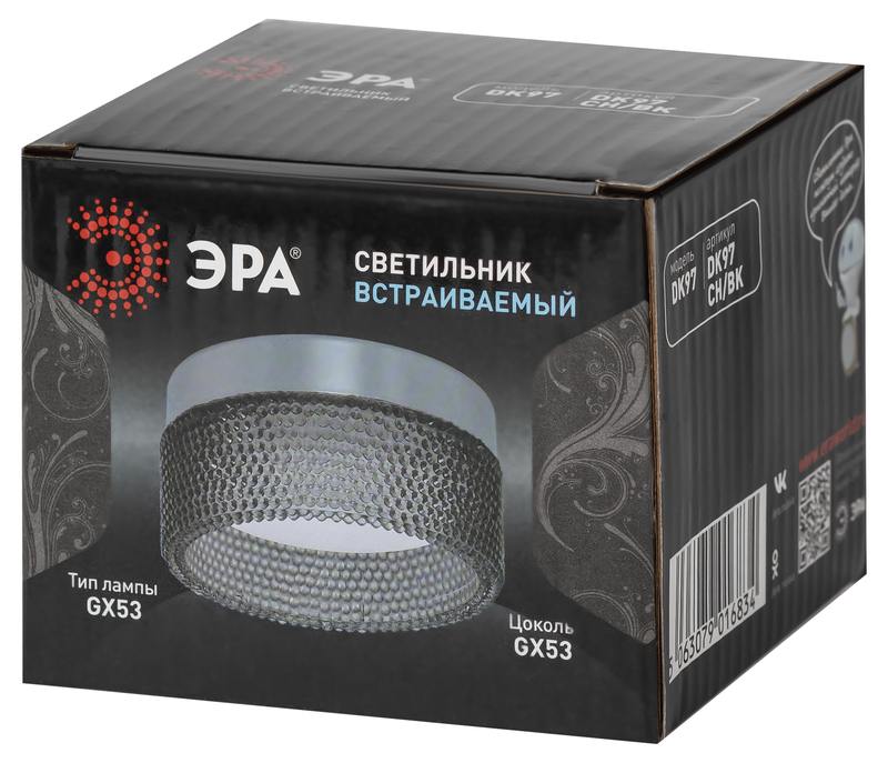 Характеристики Встраиваемый светильник под лампу GX53 ЭРА DK97 CH/BK хром черный: