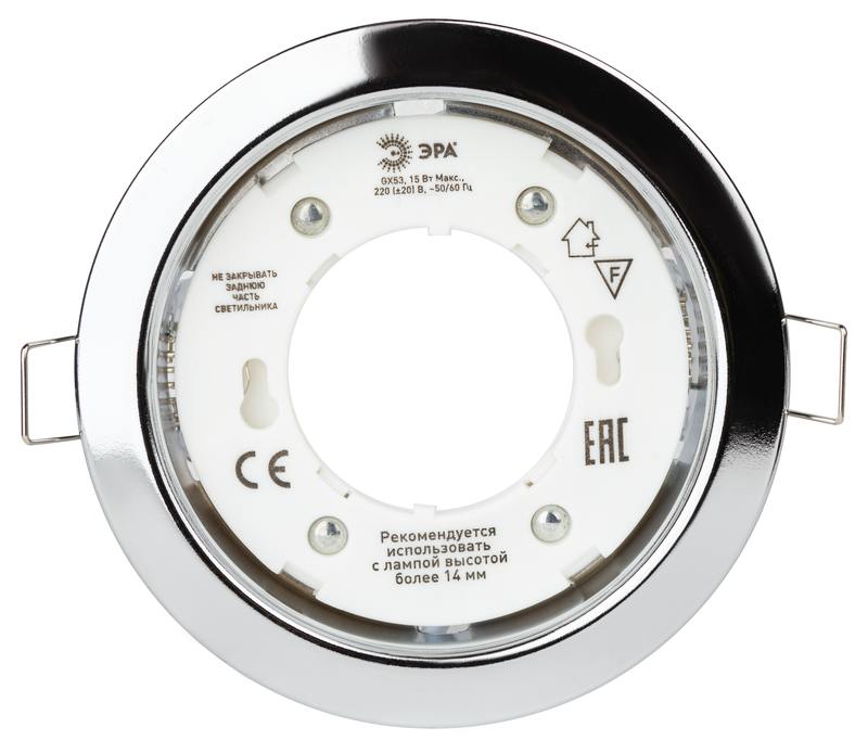 Характеристики Встраиваемый светильник под лампу GX53 ЭРА KL35 CH (б/к) 220V 15W хром: