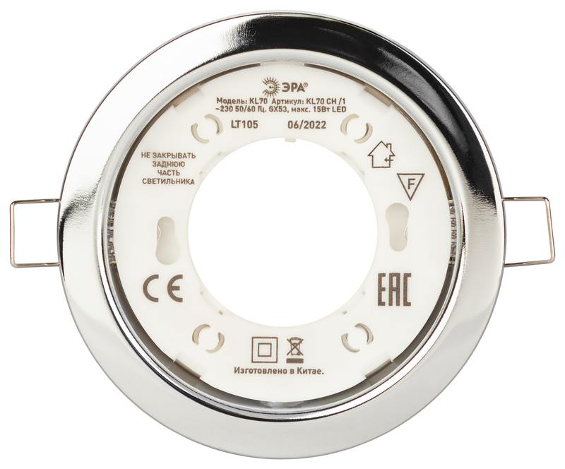 Характеристики Встраиваемый светильник под лампу GX53 ЭРА KL70 CH-10 хром упаковка 10 шт: