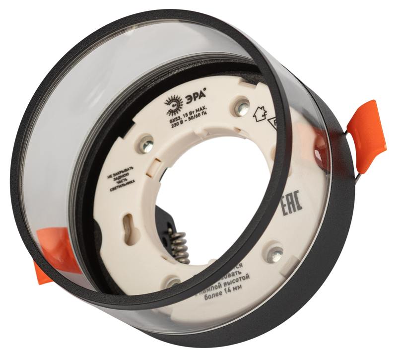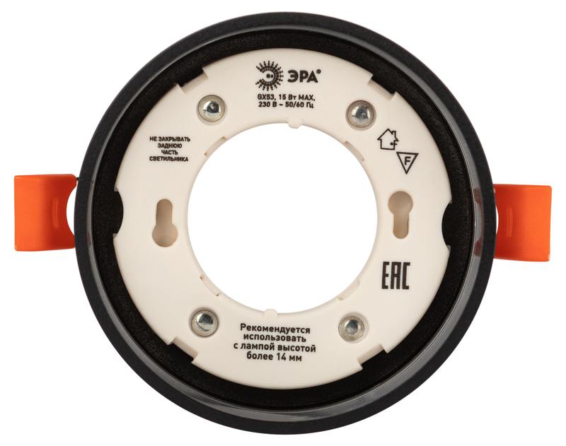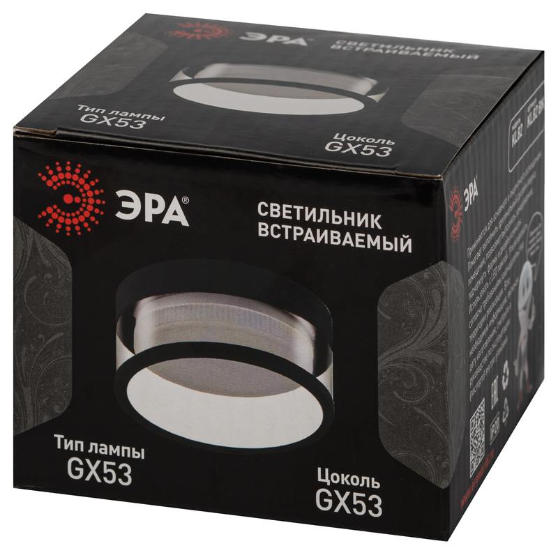 Характеристики Встраиваемый светильник под лампу GX53 ЭРА KL82 BK черный: