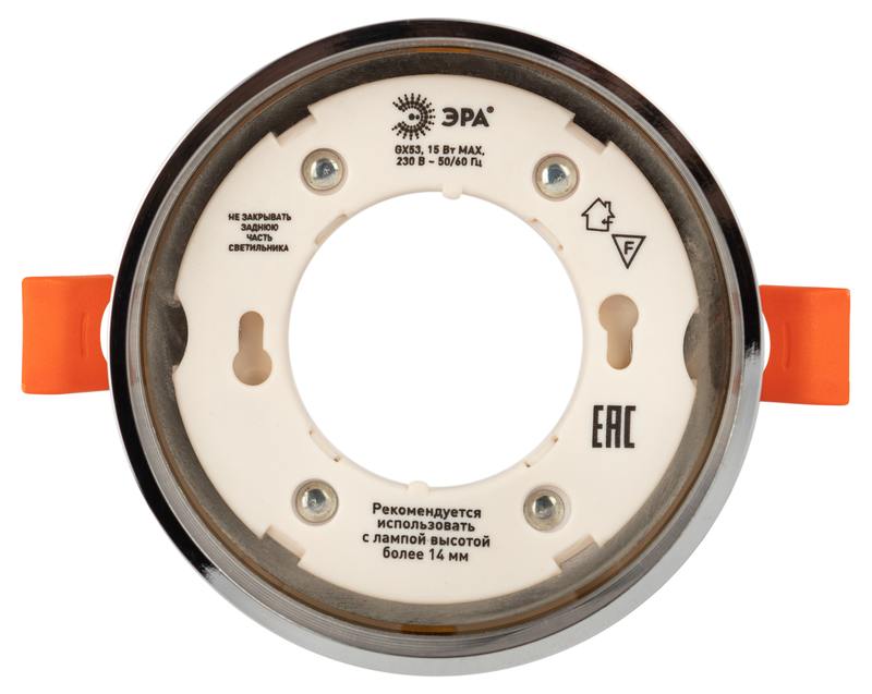 Характеристики Встраиваемый светильник под лампу GX53 ЭРА KL82 CH хром: