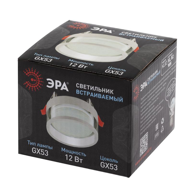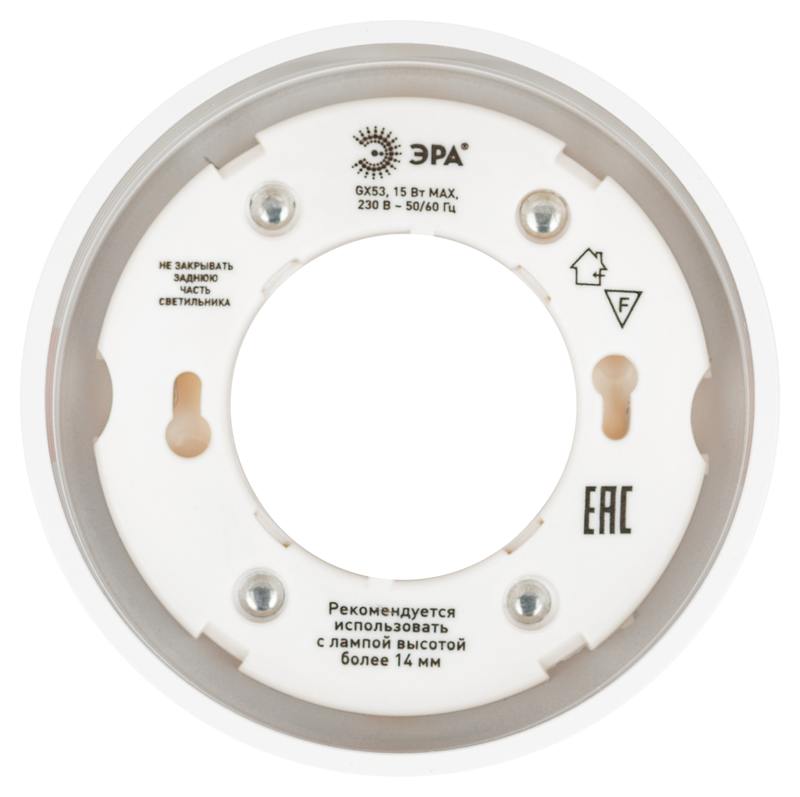 Характеристики Встраиваемый светильник под лампу GX53 ЭРА KL82 WH белый: