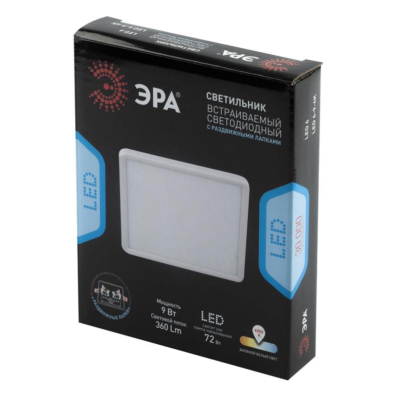 Характеристики Встраиваемый светильник светодиодный ЭРА LED 6-9-4K/1 квадратный регулируемый LED 9W 220V 4000K: