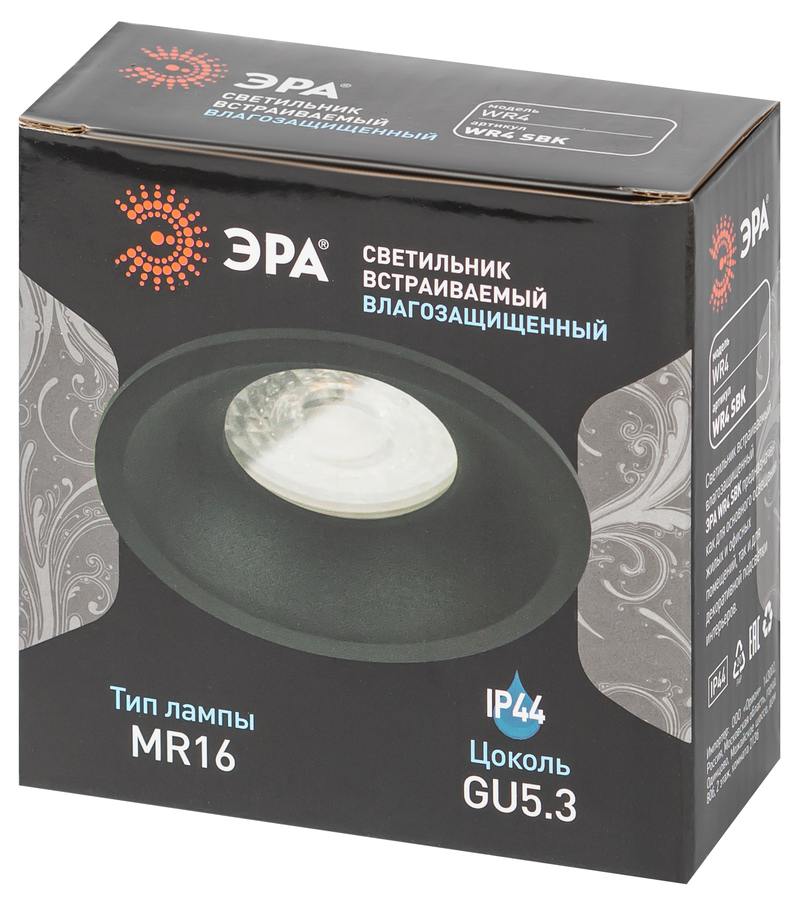 Характеристики Встраиваемый светильник влагозащищенный ЭРА WR4 SBK MR16/GU5.3 IP44 черный матовый:
