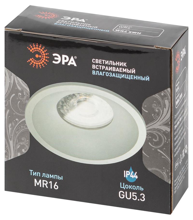 Характеристики Встраиваемый светильник влагозащищенный ЭРА WR4 SWH MR16/GU5.3 IP44 белый матовый:
