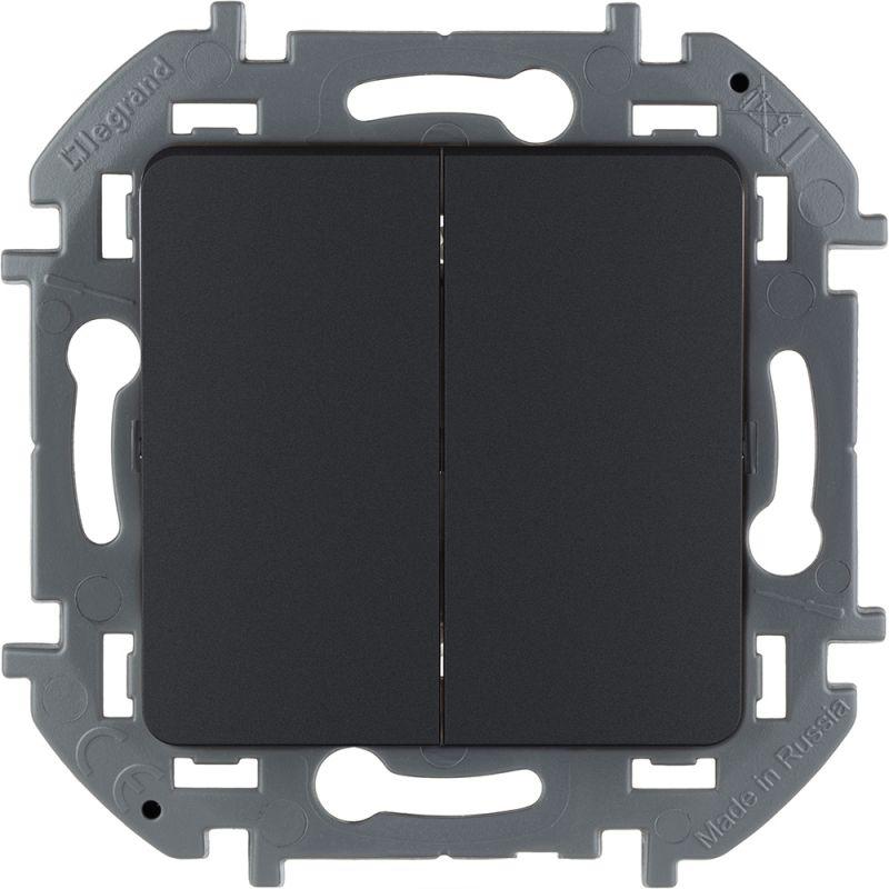 Выключатель двухклавишный Legrand Inspiria для скрытого монтажа, цвет «Антрацит», номинальный ток 10 А, напряжение ~250В. Предназначен для установки в электрических сетях жилых и общественных зданий и используется для управления приборами освещения, вентиляции и т.д. Используется для независимой коммутации двух нагрузок. Особенности изделия: — Компактный механизм с глубиной всего 20 мм. комфортно размещается в различных монтажных коробках. — Материал клавиш — глянцевый пластик АБС, стоек к выгоранию и загрязнениям. — Все токоведущие части выключателя имеют защиту от случайного прикосновения. — Безвинтовые зажимы для присоединения проводов обеспечивают быстрое подключение и отключение, гарантируют надежное и долговечное соеднинение и не требуют обслуживания. — Удобные широкие толкатели облегчают работу по демонтажу провода. — Улучшенная эргономика снижает вероятность искрения при коммутации светодиодов. — Ход клавиши короткий, не громкий.