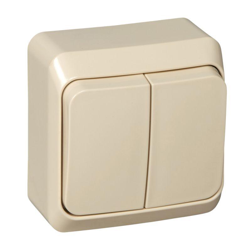 Выключатель ЭТЮД (кремовый, открытой установки) двухклавишный предназначен для применения в сетях до 250В, на ток до 10А. Наличие подсветки делает его легко находимым при отсутствии освещения. Светодиод находится внутри выключателя, и в темное время подсветка видна по контуру клавиш. Две клавиши позволяют управлять двумя источниками света с одной точки. Сделано в России.