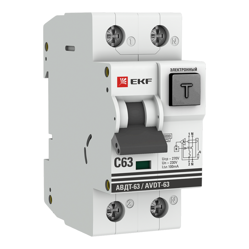 Характеристики Выключатель автоматический дифференциального тока 2п C 63А 100мА тип A 6кА АВДТ-63 2мод. электрон. PROxima EKF DA63-63-100e: