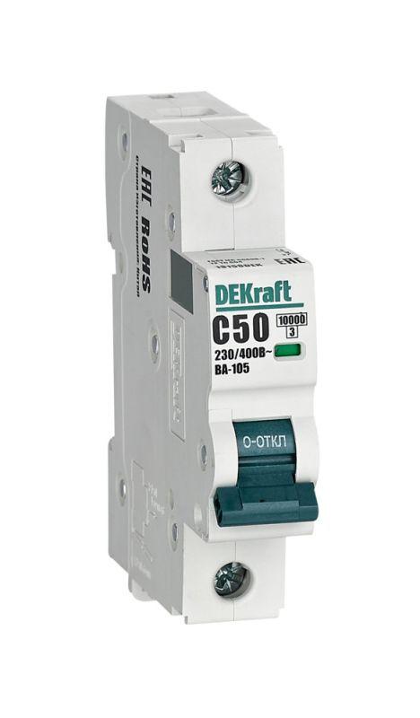 Характеристики Выключатель автоматический модульный 1п C 50А 10кА ВА-105 DEKraft 13158DEK: