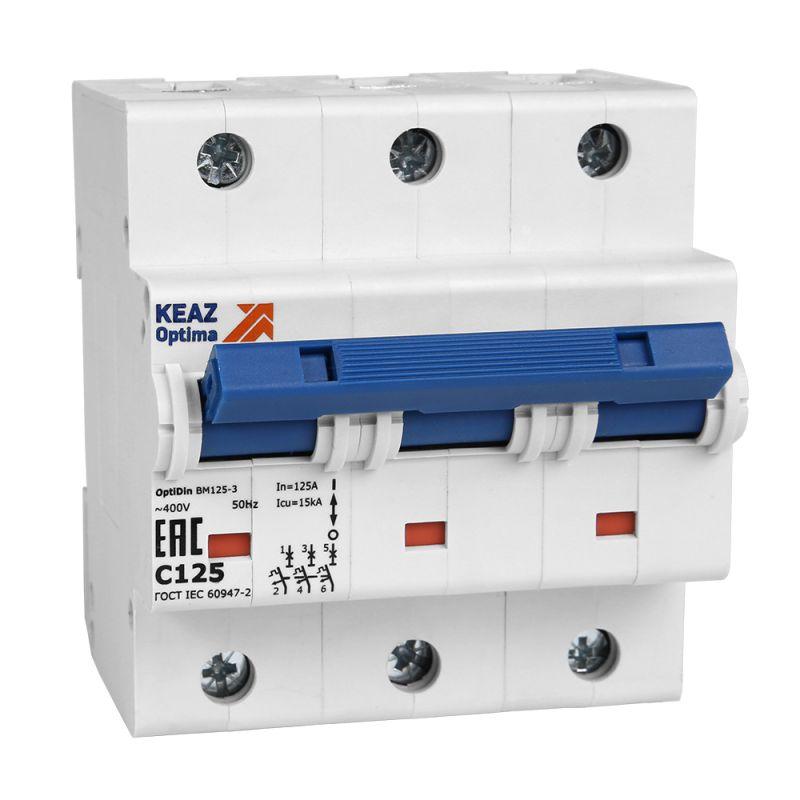 Характеристики Выключатель автоматический модульный 3п C 80А 20кА OptiDin BM125-3C80-8ln-УХЛ3 КЭАЗ 138543: