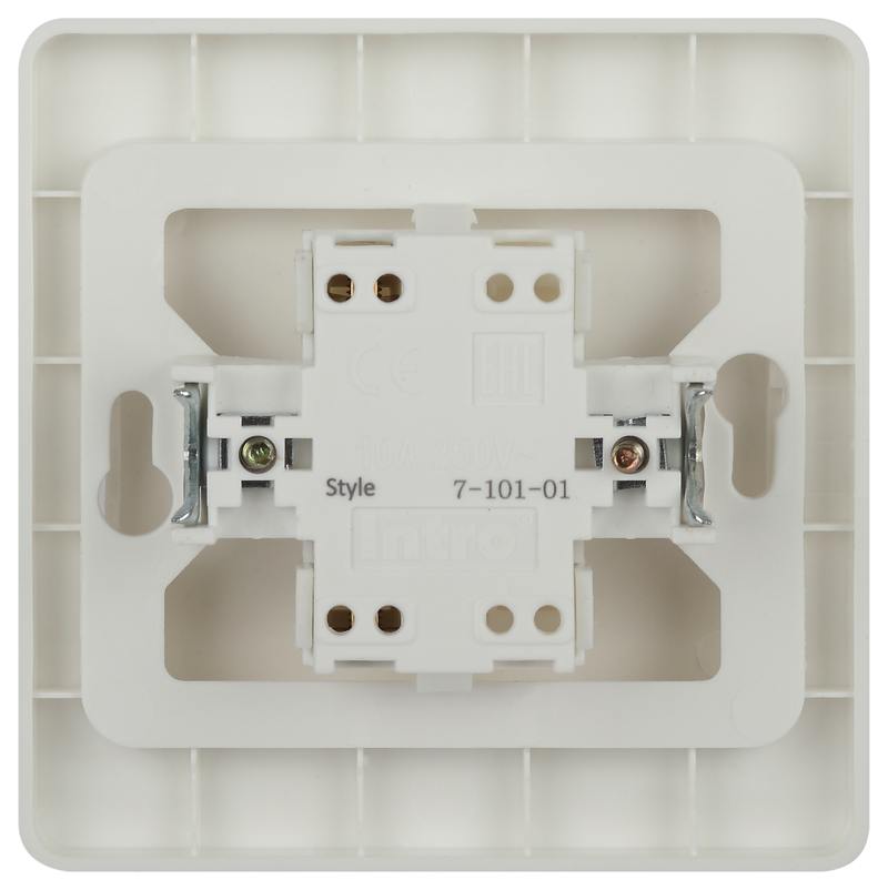 Выключатель 1-клавишный серии Intro ST скрытой установки цвет белый 7-101-01. Номинальные характеристики 10А 250В . Выключатель выполнен из качественного негорючего термопласта, укомплектован одноместной рамкой, оснащён винтовыми клеммами. Вертикальное расположение клемм обеспечивает удобный и надёжный монтаж. Клеммы с двумя отверстиями позволяют соединять соседние выключатели шлейфом. Установка в подрозетник производится как на монтажные лапки, так и на винты.