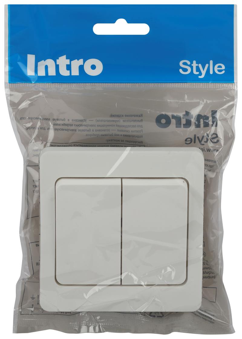 Характеристики Выключатель Intro 7-104-01 Style двойной, 10А-250В, IP20, СУ, белый: