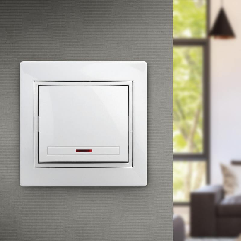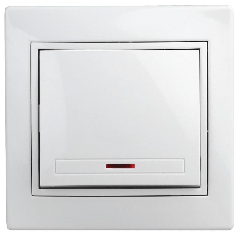 Характеристики Выключатель Intro Plano 1-102-01 одноклавишный с подсветкой, 10А-250В, IP20, СУ, белый:
