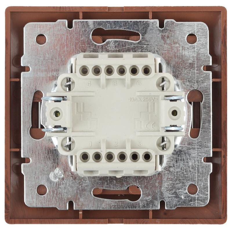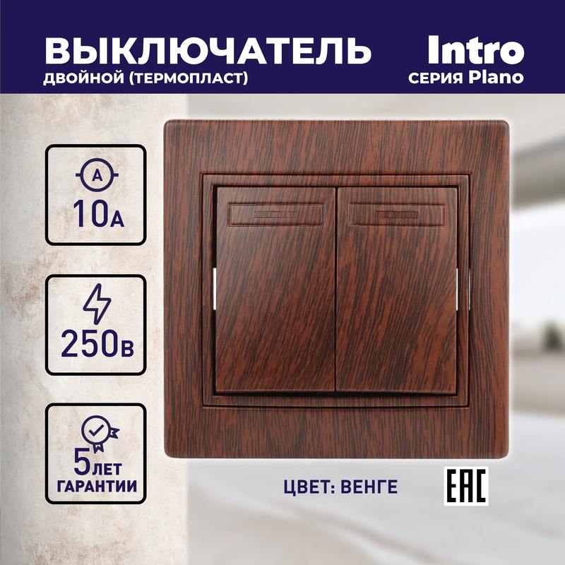 Характеристики Выключатель Intro Plano 1-104-10 двухклавишный, 10А-250В, IP20, СУ, венге: