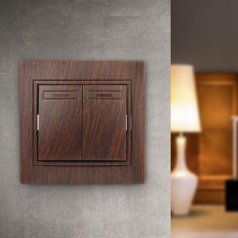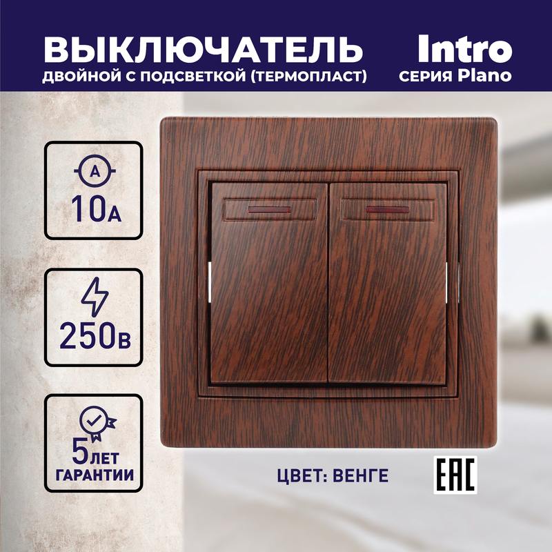 ыключатель двойной с подсветкой, 10А-250В, IP20, СУ, венге Intro Plano 1-105-10
