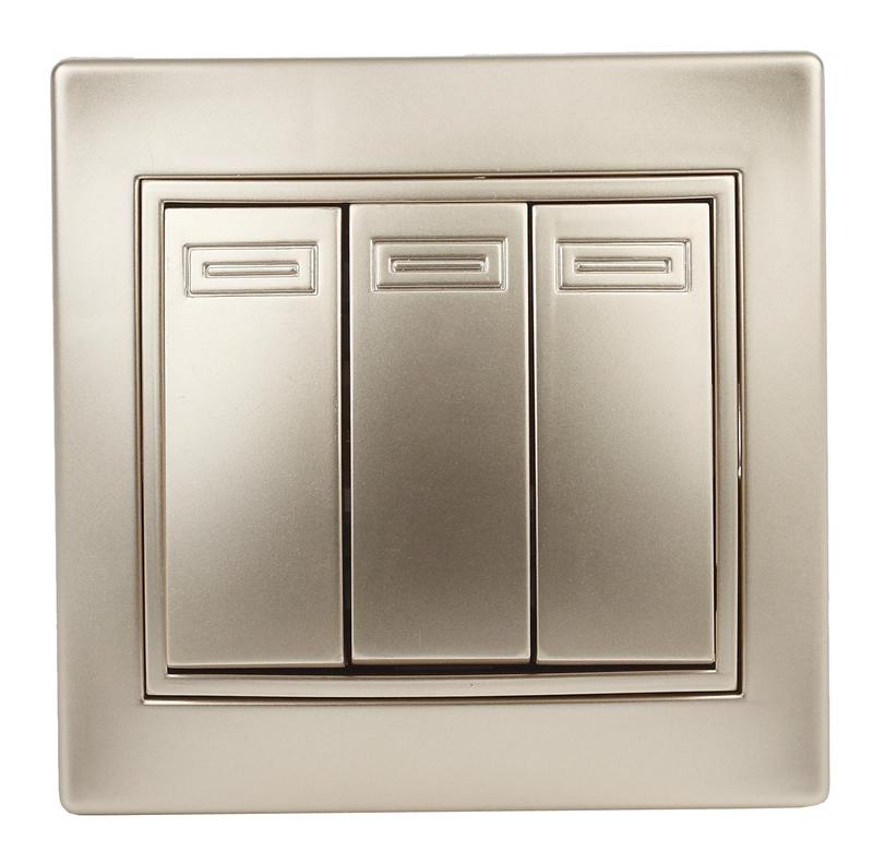 Выключатель тройной, 10А-250В, IP20, СУ, шампань Intro Plano 1-106-04
