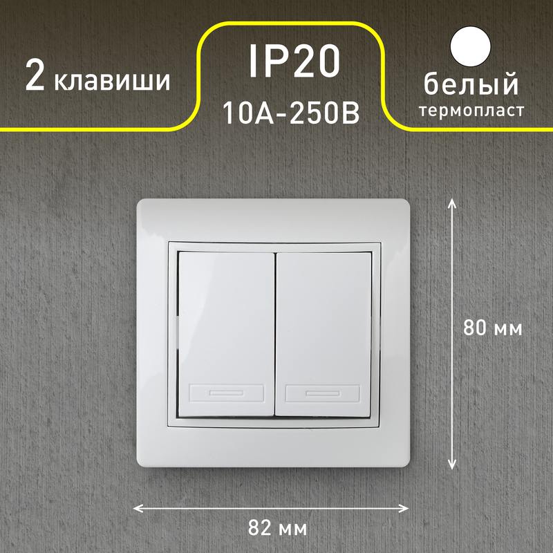 Выключатель двойной, 10А-250В, IP20, СУ, б.л., белый Intro Plano 1Э-104-01