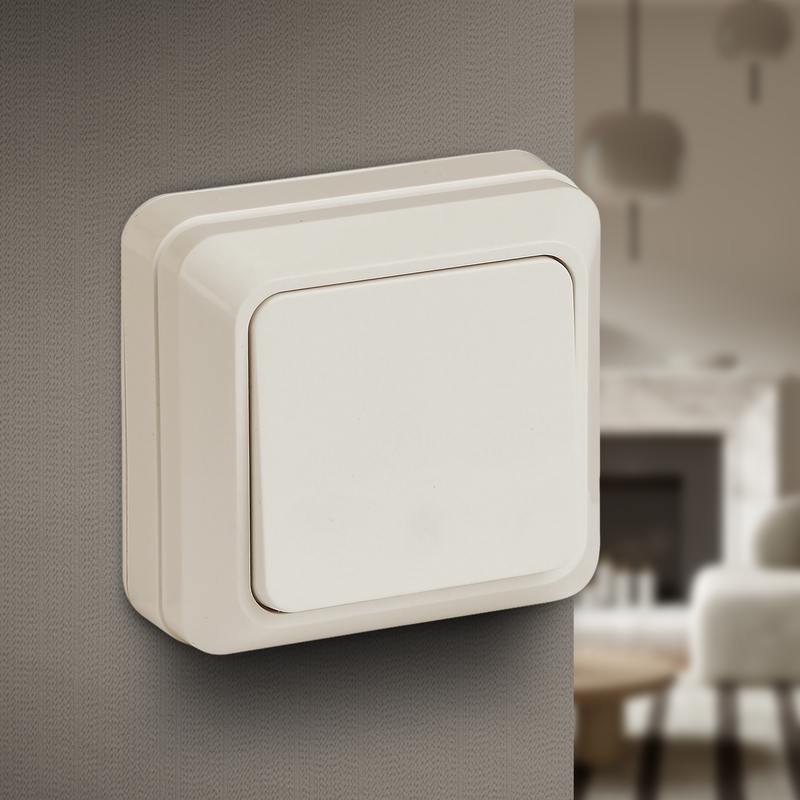 Выключатель Intro Quadro 2-101-02 одноклавишный 10А-250В, IP20, ОУ, слоновая кость