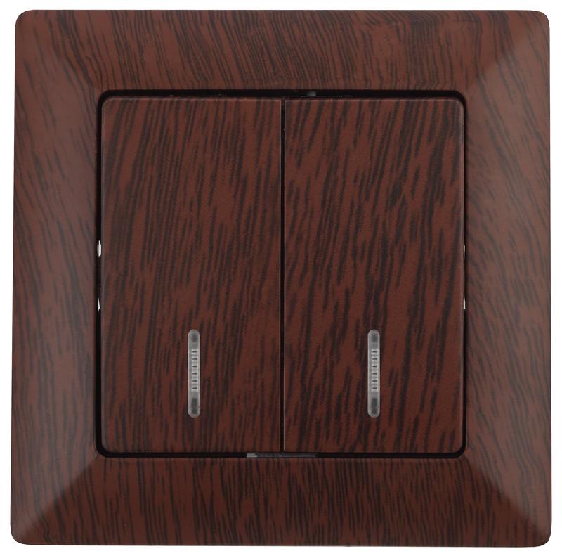 Характеристики Выключатель Intro Solo 4-105-10 двухклавишный с подсветкой, 10А-250В, IP20, СУ, венге: