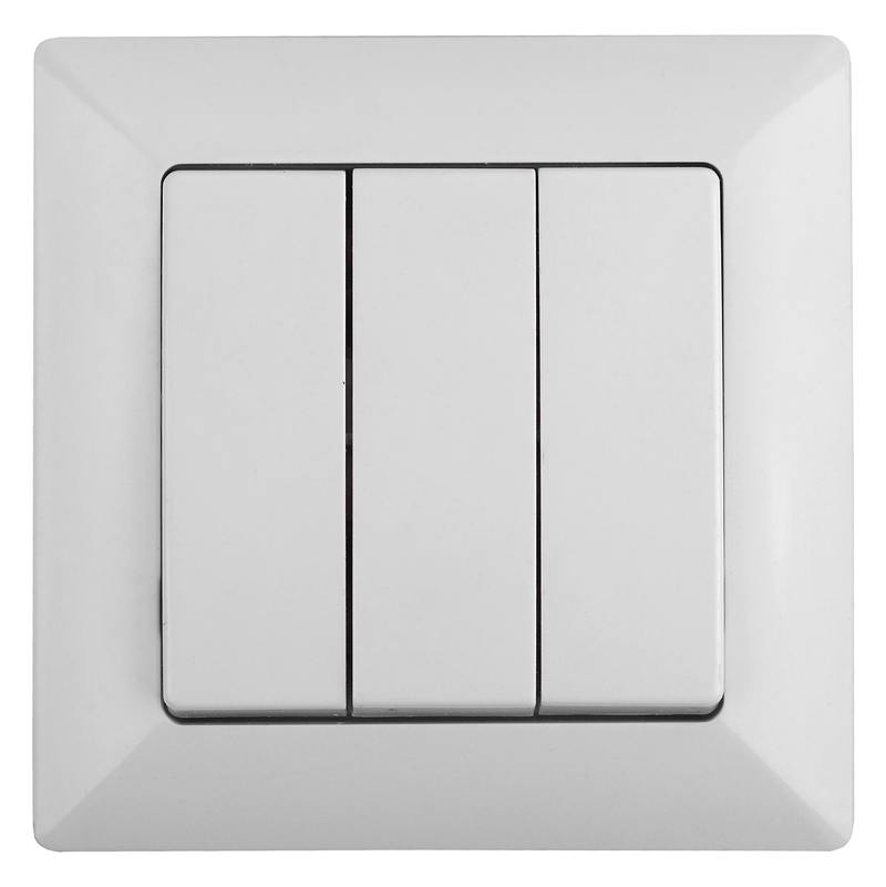 Характеристики Выключатель Intro Solo 4-106-01 трехклавишный 10А-250В, IP20, СУ, белый:
