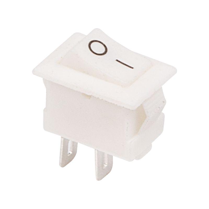 Выключатель клавишный 250V 3А (2с) ON-OFF белый Micro предназначен для коммутации электрических цепей переменного тока напряжением до 250В. Клавишные (Рокерные) выключатели применяются в качестве комплектующих изделий различного электрооборудования (в сетевых фильтрах и удлинителях, аудио-оборудовании, блоках питания, электроустановках на различных производствах, автомобилях, и многих других местах). Такой клавишный переключатель имеет два положения. Принцип действия основан на перемещении клавиши в одну из позиций. Для переключения в нужное положение требуется приложить некоторые усилия на клавишу. Монтаж осуществляется без применения винтов на плоских панелях толщиной от 0.8мм до 3мм. Подключение контактов осуществляется плоской клеммой, либо с помощью пайки. Основные характеристики: Номинальное напряжение: 250В; Предельное напряжение: 1500VАС не более 1 минуты; Номинальный ток: 3A (250VAC); Контактное сопротивление: не более 35 мОм; Тип переключения: ON-OFF; Количество контактных групп: 1; Количество контактов в контактной группе: 2; Фиксация положения: да; Индикация коммутационных положений: нет. Рабочая температура: от -25? до +85?; Ресурс: 10 000 циклов.