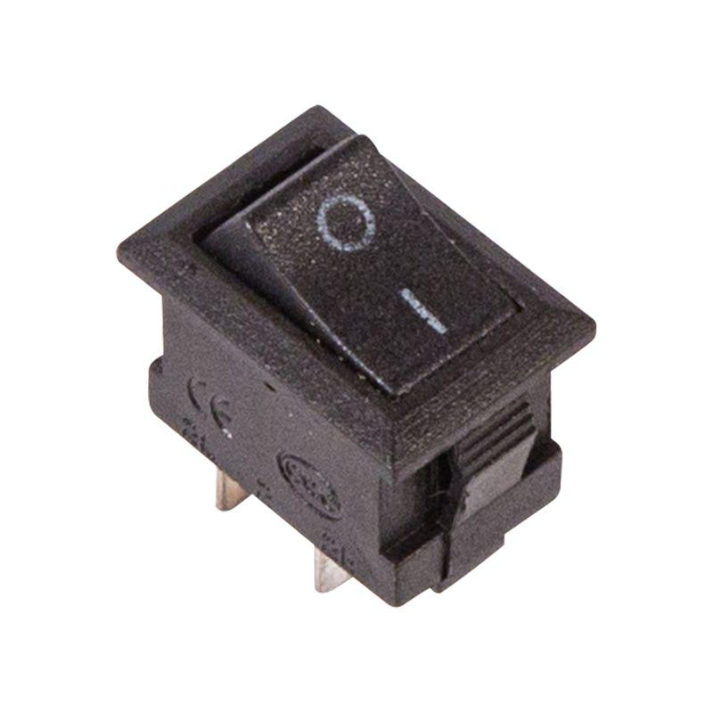 Выключатель клавишный 250V 3А (2с) ON-OFF черный Micro предназначен для коммутации электрических цепей переменного тока напряжением до 250В. Клавишные (Рокерные) выключатели применяются в качестве комплектующих изделий различного электрооборудования (в сетевых фильтрах и удлинителях, аудио-оборудовании, блоках питания, электроустановках на различных производствах, автомобилях, и многих других местах). Такой клавишный переключатель имеет два положения. Принцип действия основан на перемещении клавиши в одну из позиций. Для переключения в нужное положение требуется приложить некоторые усилия на клавишу. Монтаж осуществляется без применения винтов на плоских панелях толщиной от 0.8мм до 3мм. Подключение контактов осуществляется плоской клеммой, либо с помощью пайки. Основные характеристики: Номинальное напряжение: 250В; Предельное напряжение: 1500VАС не более 1 минуты; Номинальный ток: 3A (250VAC); Контактное сопротивление: не более 35 мОм; Тип переключения: ON-OFF; Количество контактных групп: 1; Количество контактов в контактной группе: 2; Фиксация положения: да; Индикация коммутационных положений: нет. Рабочая температура: от -25? до +85?; Ресурс: 10 000 циклов.