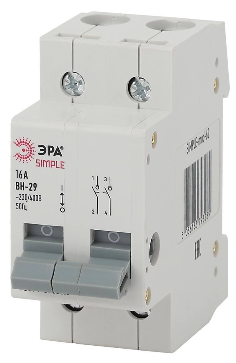 Характеристики Выключатель нагрузки ЭРА SIMPLE SIMPLE-mod-59 2P 16А ВН-29: