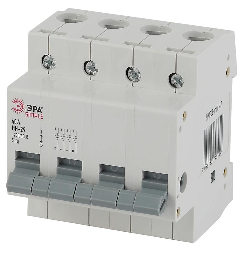Характеристики Выключатель нагрузки ЭРА SIMPLE SIMPLE-mod-69 4P 40А ВН-29: