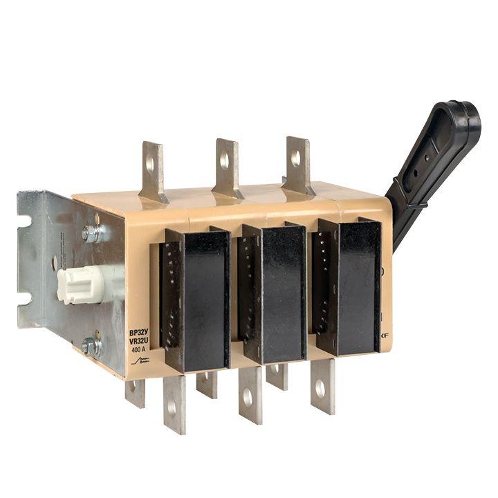 Выключатели-разъединители ВР32У (универсальные) серии MAXima предназначены для ручного включения-отключения цепей переменного тока с номинальным напряжением до 690 В частотой 50 Гц. В конструкции применена трехполюсная контактная система ножевого типа с двойным видимым разрывом цепи. С помощью двойного разрыва цепи, больших растворов контактов и дугогасительных камер обеспечивается эффективное гашение электрической дуги при коммутации нагрузок, что препятствует преждевременному и чрезмерному износу контактов. Конструкция контактных выводов обеспечивает болтовое присоединение шин или проводников, оконцованных кабельными наконечниками. Все рубильники являются универсальными по типу присоединения рукоятки. Конструкция рубильника предусматривает установку рукоятки как справа от корпуса, так и слева. Расположение рукоятки, левое или правое, можно поменять в процессе эксплуатации при необходимости. Расположение плоскости присоединения внешних зажимов контактных выводов перпендикулярно плоскости монтажа. Выпускается несколько исполнений ВР32У:
