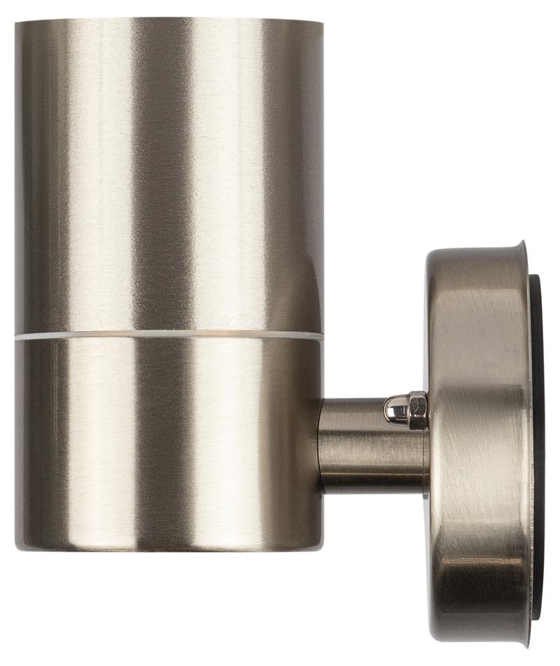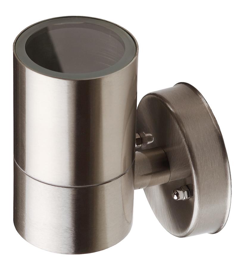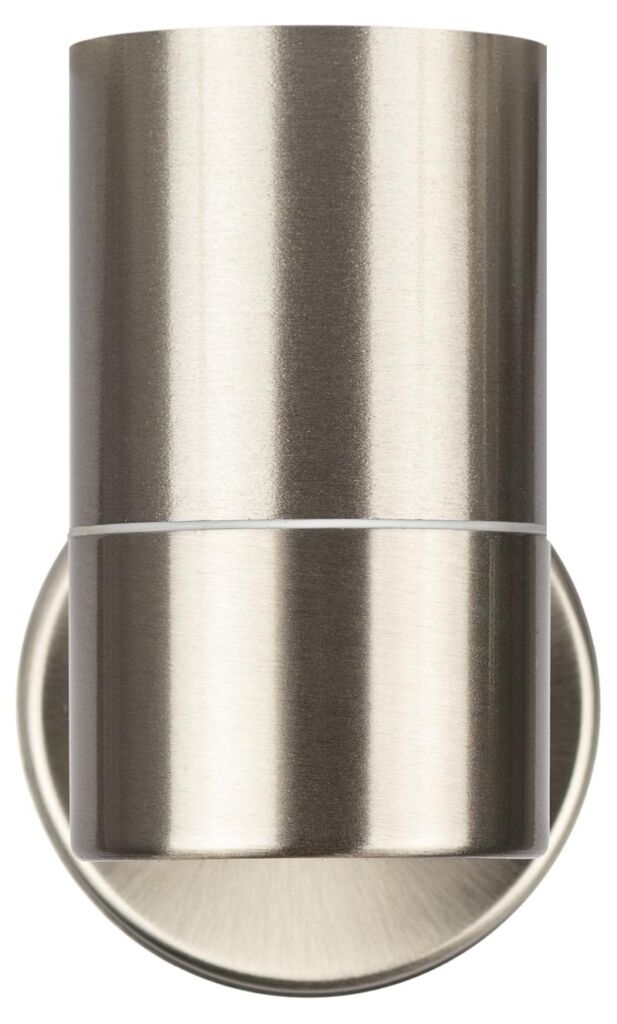 Светильник декоративный настенный WL14 создает интересные световые композиции, подчеркивает структуру материалов. Подходит для наружного уличного освещения. Цоколь для источника света GU10, напряжение питания 220В ~50/60Гц, материал нержавеющая сталь/стекло, цвет светильника хром, размер 77*180 мм, D60 мм, максимальная мощность лампы 50 Вт, степень защиты IP44
