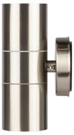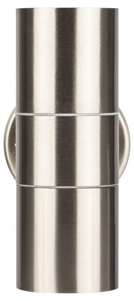 Светильник декоративный настенный WL16 создает интересные световые композиции, подчеркивает структуру материалов. Подходит для наружного уличного освещения и влажных помещений. Цоколь для источника света GU10, напряжение питания 220В ~50/60Гц, материал нержавеющая сталь + пластик, цвет светильника хром, размер 92*160*77 мм, D60 мм, максимальная мощность лампы 50 Вт, степень защиты IP44