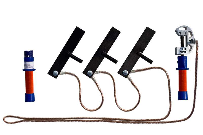• ПРИНЦИП ДЕЙСТВИЯ Переносное заземление представляет собой три зажима (по количеству фаз), которые накладываются на отключённые токоведущие части электроустановки. Каждый из этих трёх зажимов соединяется гибким проводником с четвёртым – накладываемым на заземлённую часть электроустановки. При соблюдении технологии закрепления зажимов исключается их самопроизвольный срыв с заземляемых деталей. Зажимы обычно накладываются с помощью специальных изолирующих штанг, которые поставляются нами в комплекте с заземлениями.