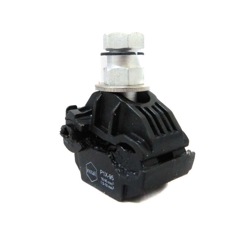 Зажим ответвительный прокалывающий P1X-95 (16-95; 1.5-10) (P 4; SLIW 11.1; EP 95-13; CT 25; OP 6; ЗОИ 16-70; PC 95-10) ИНСТАЛЛ 14038 – аксессуар, арматура. Используется при монтаже воздушных проводов. Используется при монтаже провода сечением 1,5-95 кв.мм. Поставщик: ГК «Инсталл».