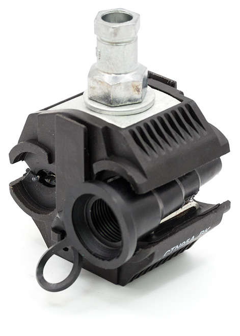 • ПРИНЦИП ДЕЙСТВИЯ Электрический контакт осуществляется прокалыванием изоляции жил проводов ответвления. Контроль над усилием затяжки болта осуществляется применением срывной головки. Зажимы изготовлены из коррозионностойкого алюминиевого сплава. Зубья зажимов покрыты оловом, а форма зубцов препятствует проникновению влаги к жиле и предотвращает коррозию. Внутрь каждого зажима помещается смазка-анти-оксидант. Корпус выполнен из механически прочного атмосферостойкого термопластика.
