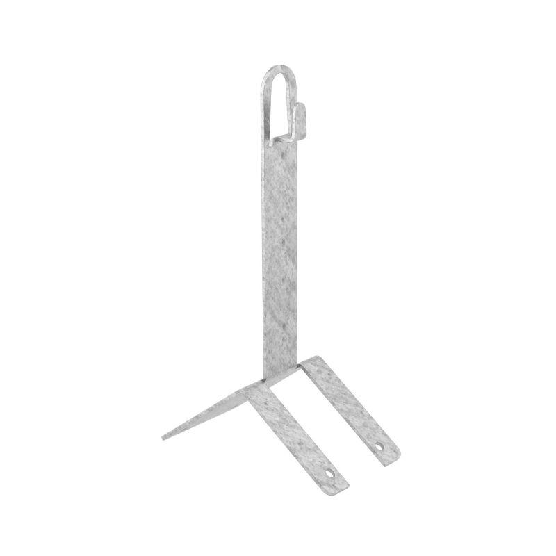 Угловой коньковый зажим используется для фиксации молниеприемной сетки на остром коньке кровли при помощи саморезов. Проводник крепится безвинтовым зажимом при помощи плоскогубцев. Материал — горячеоцинкованная сталь.