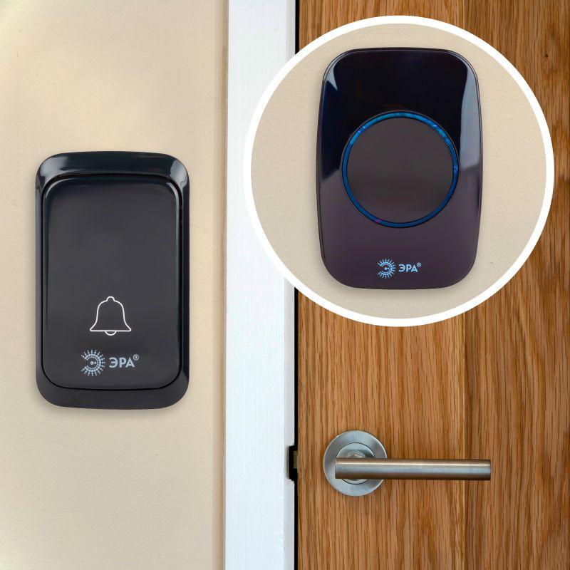 ЭРА С88 – беспроводной звонок с 38 полифоническими мелодиями. Можно крепить на саморезы или самоклеящуюся основу (крепежи в комплекте). Звонок работает от 3 пальчиковых батареек (3 х АА, не в комплекте), кнопка звонка – от батарейки А23 (в комплекте!). Корпус изготовлен из легкого прочного пластика базового черного цвета. Дизайн звонка лаконичный, такой дверной звонок – универсальная практичная покупка для дома.