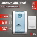 Характеристики Звонок дверной ЭРА C31 беспроводной синий с белой кнопкой 32 мелодии: