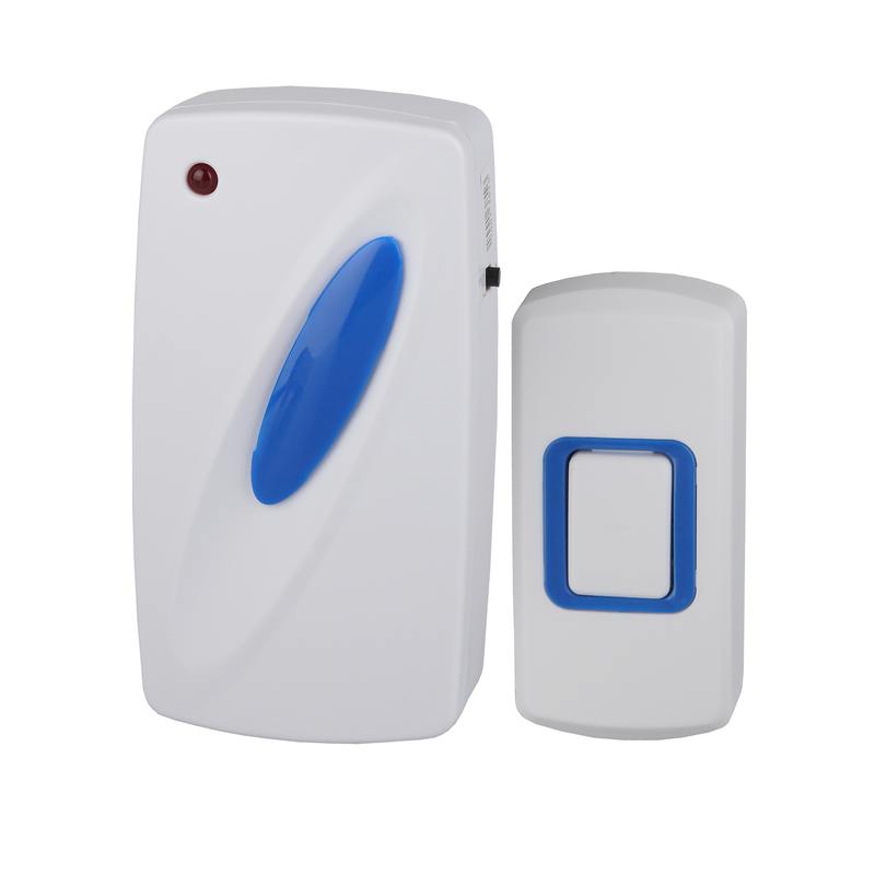 Беспроводной дверной звонок, работающий от сети. Встроенная вилка упрощает использование, позволяя за секунду подключать устройство в любом месте, где есть розетка. И переносить динамик из комнаты в комнату. Кнопка работает от батарейки А23, которая поставляется в комплекте. На выбор 6 качественных мелодий, их можно менять по настроению. Радиус действия звонка 100 метров. Компактный размер, приятная бело-синяя цветовая гамма. Аккуратная блистерная упаковка делает этот звонок отличным вариантом подарка на новоселье и другие праздники!