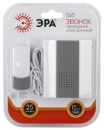 Характеристики Звонок дверной ЭРА D65 проводной белый с серым 25 мелодий: