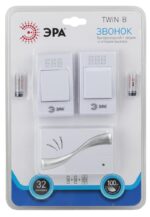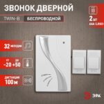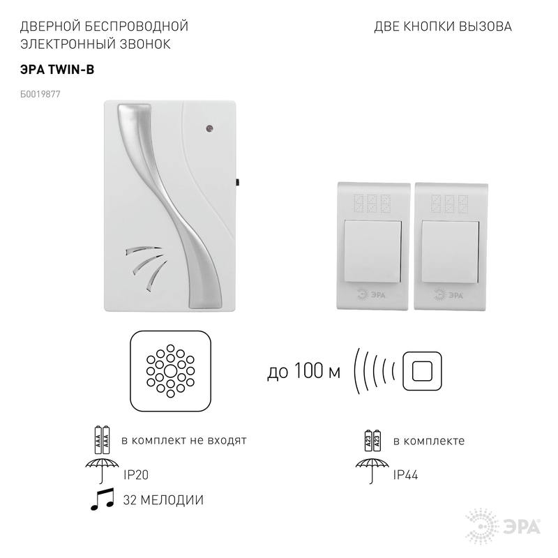Характеристики Звонок дверной ЭРА TWIN-B беспроводной две кнопки белый 32 мелодии: