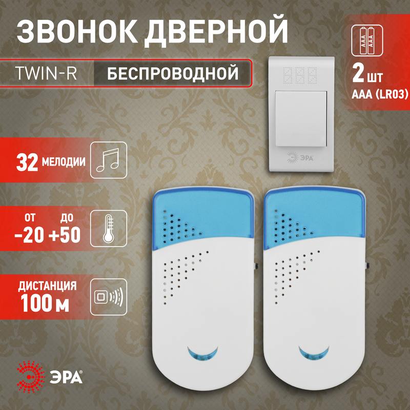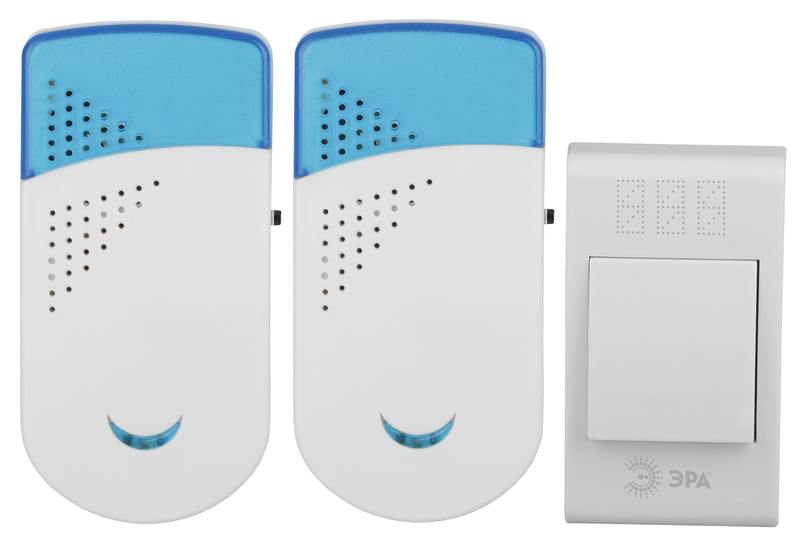 Характеристики Звонок дверной ЭРА TWIN-R беспроводной два динамика белый с голубым 32 мелодии: